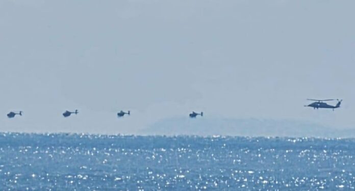 وذكرت الصحيفة أنّ صوراً انتشرت على مواقع التواصل الاجتماعي مطلع تشرين الأول الجاري أظهرت مروحيات هجومية من طراز “MH-6 ليتل بيرد” وطائرات “بلاك هوك” من طراز “MH-60” تحلق فوق المياه المفتوحة قرب منصات النفط والغاز.