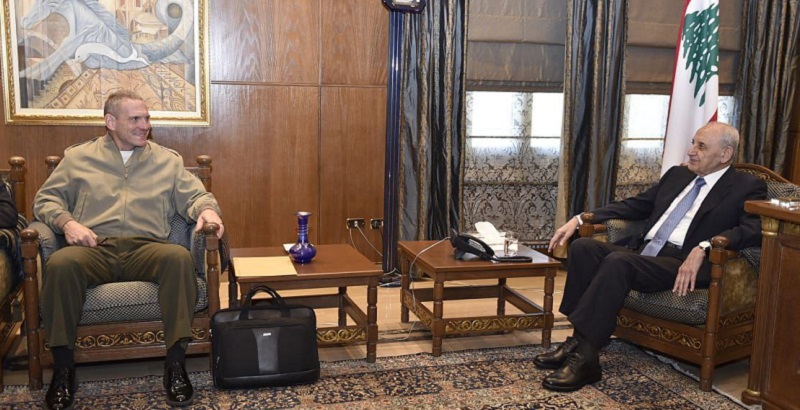 تابع رئيس مجلس النواب نبيه بري الأوضاع الميدانية خلال إستقباله رئيس لجنة مراقبة وقف اطلاق النار ال “Mechanism” الجنرال جوزيف كليرفيلد، والوفد العسكري المرافق، بحضور القائم بأعمال السفارة الأميركية في لبنان كيث هانيغان والمستشار الإعلامي لرئيس المجلس علي حمدان، حيث جرى عرض للأوضاع الميدانية في الجنوب وسير عمل اللجنة.