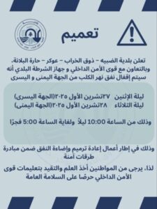 وطلبت من المواطنين “أخذ العلم والتقيّد بتعليمات قوى الأمن الدّاخلي، حرصًا على السّلامة العامّة”.