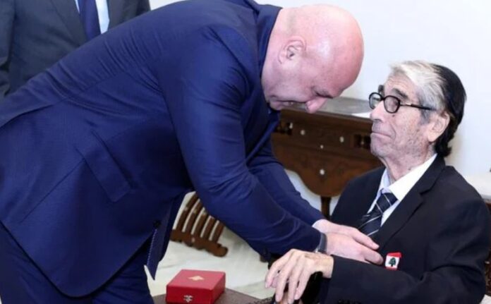 وبعد تقليده الوسام، قال عون: “لقاؤنا اليوم شئته مناسبةٍ مفعمةٍ بالعرفان، لتكريم قامةً لبنانية أصيلة، راسخةً في وجدان اللبنانيين، الفنان الكبير صلاح تيزاني – أبو سليم، الذي لم يكن مجرد ممثلٍ أو مخرجٍ أو نجمٍ من نجوم الزمن الجميل، بل مدرسةً متكاملة في الأخلاق والفن والالتزام، وركنًا من أركان الذاكرة الجماعية اللبنانية.”