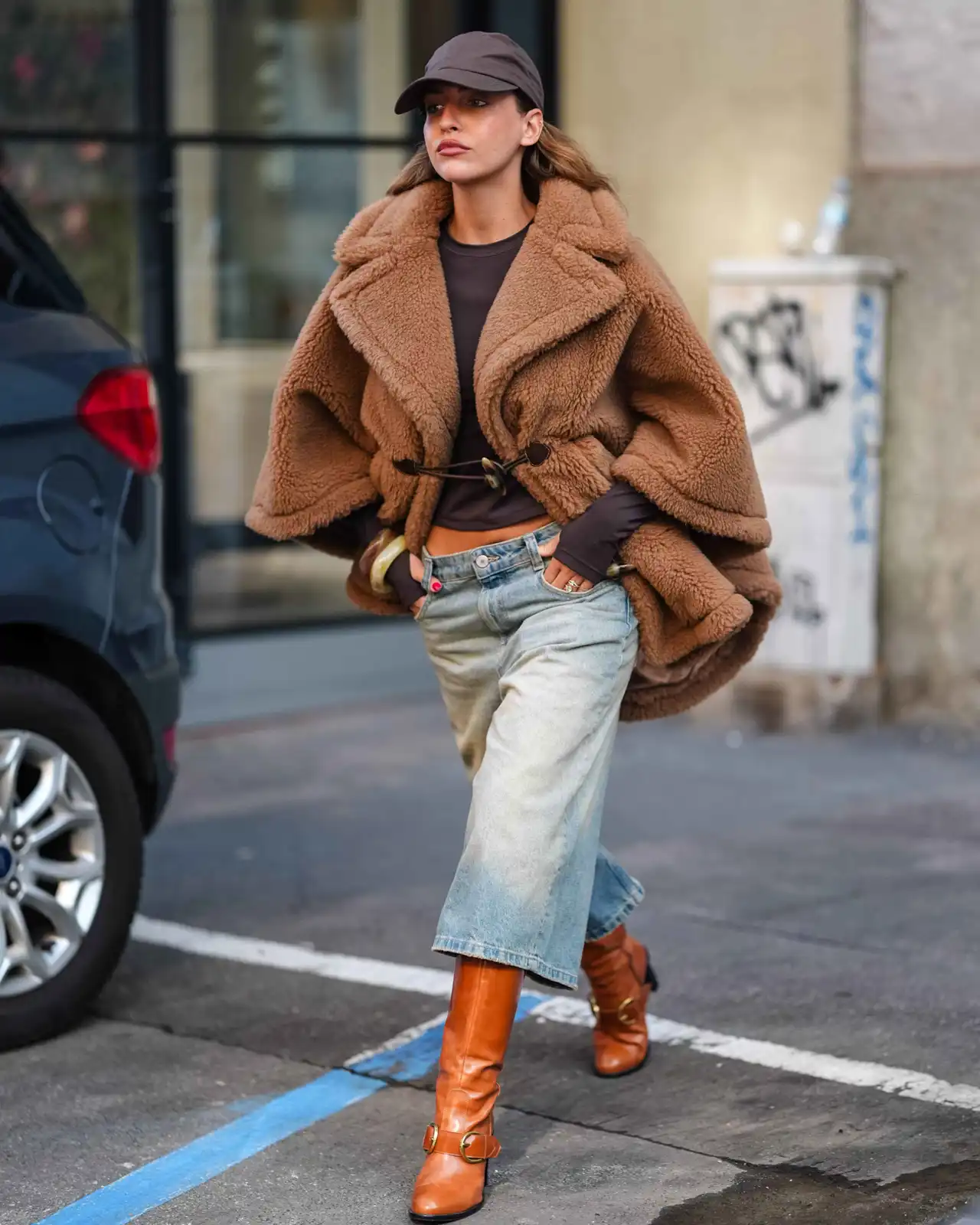 إذا كنتِ تبحثين عن الراحة مع لمسة عصرية أنيقة، فاعتمدي بلوزة ضيّقة مع شورت جينز واسع لإطلالة شارع عصرية ونسّقيها مع بوت جلدي طويل يغطي الركبة، ليمنح الإطلالة طابعا عمليا، وأضيفي الكاب بلون مناسب مع الإطلالة.