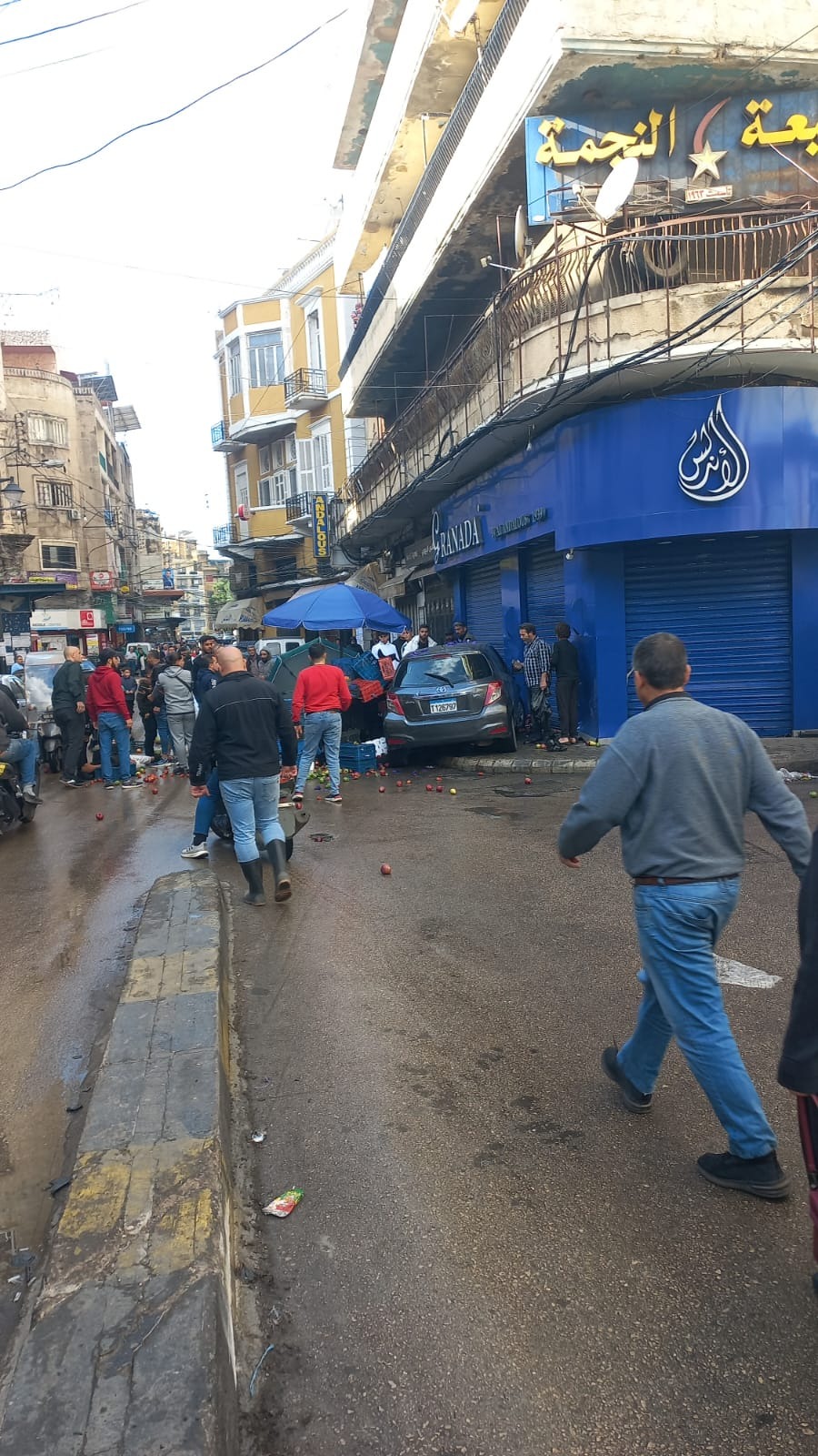 انفجر إطار سيارة مرسيدس، بعد ظهر الأحد، في ساحة النجمة بمدينة طرابلس، مما أدى إلى فقدان السائق السيطرة على السيارة وانحرافها واصطدامها بعربة بيع خضار متوقفة على جانب الطريق.