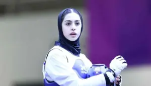 وقالت وكالة “إيسنا” الإيرانية: “انسحبت روجان غودارزي من المنافسات في بطولة العالم للتايكواندو تحت 21 عاماً لأنها كانت في المجموعة عينها مع لاعبة من الكيان الصهيوني”.