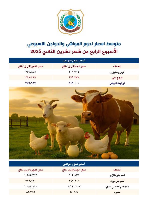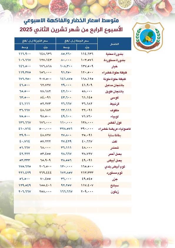 الرئيسيةاقتصادبالأرقام.. أسعار اللحوم والخضار والفاكهةاقتصادشريط الاحداثبالأرقام.. أسعار اللحوم والخضار والفاكهة نشرت وزارة الزراعة، عبر منصة “إكس” متوسط أسعار الجملة والتجزئة للحوم والخضار والفاكهة والحليب خلال الأسبوع الرابع من شهر تشرين الثاني 2025.Tagsأسعارخضارفاكهةلحوموزارة الزراعةشريط الأحداثزيارة لمندوبي “مجلس الأمن” إلى الجنوب 05/12/2025 الفصائل لا تشتري رواية السوداني: وسْم المقاومة بالإرهاب مُتعمّد 05/12/2025 المانحون لا يريدون مساعدة الجنوبيين! 05/12/2025 سقوف لسحب الراتب توازياً مع إقفال الفروع: المصارف تبلطج على الموظفين 05/12/2025 مقالات ذات صلة سياسةزيارة لمندوبي “مجلس الأمن” إلى الجنوب 05/12/2025 شريط الاحداثالفصائل لا تشتري رواية السوداني: وسْم المقاومة بالإرهاب مُتعمّد 05/12/2025 سياسةالمانحون لا يريدون مساعدة الجنوبيين! 05/12/2025