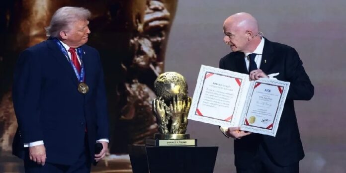 وتسلم ترامب الجائزة شخصيا بحضور رئيس الفيفا جياني إنفانتينو.