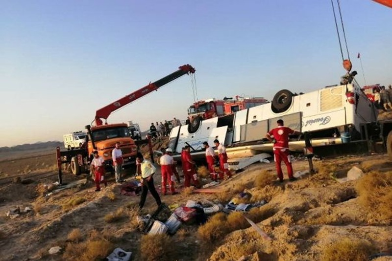 13 قتيلاً و11 جريحاً بانقلاب حافلة في ايران (فيديو)
