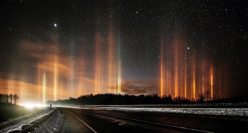 وعادةً، تظهر هذه الظاهرة النادرة خلال فترات الصقيع الشديد، إذ ينعكس ضوء أعمدة الإنارة على بلورات الجليد في الهواء، مكوِّنًا أعمدة ضوئية ملوّنة تمتد نحو السماء، وغالبًا ما يخلط بعض الناس بينها وبين الشفق القطبي.
