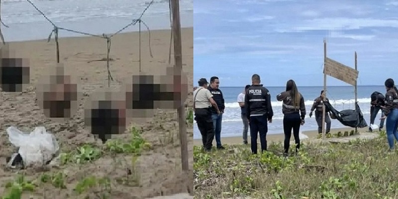 وأظهرت صور نشرتها وسائل إعلام إكوادورية المشهد الدموي، وبجانب الرؤوس كانت هناك لافتة تحذيرية موجهة إلى من يزعم أنهم يبتزون الصيادين في ميناء الصيد الصغير “بويرتو لوبيز”، وكانت الحبال مثبتة بأعمدة خشبية على الشاطئ.
