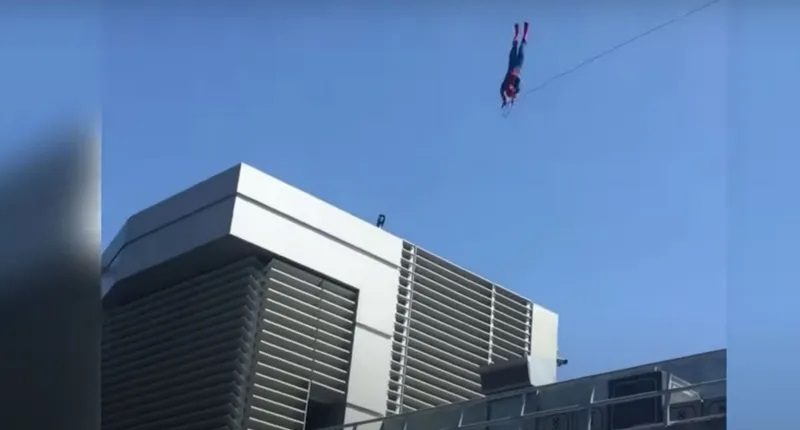 وأظهر مقطع فيديو انتشر على مواقع التواصل الاجتماعي، اصطدام “سبايدرمان” بالمبنى الذي كان يفترض أن يهبط فوقه، وسط ذهول الجمهور الذي كان حاضراً في المكان لمتابعة اللقطة المثيرة.