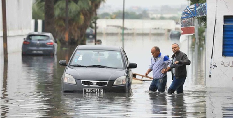 وغمرت المياه عدة أحياء بالضاحية الشمالية قرب العاصمة وفي مناطق أخرى شمال شرق البلاد، حيث رفعت السلطات المخاطر إلى “درجة إنذار شديدة”، وهي القصوى، في ولاية تونس والمناطق المحيطة بها وولاية نابل.
