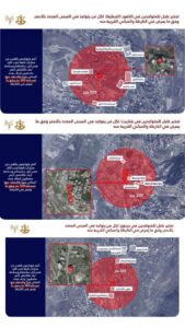 وتوجه إلى سكان المبنى المحدد بالأحمر في الخريطة المرفقة والمباني المجاورة له بالقول: أنتم تتواجدون بالقرب من مبنى يستخدمه حزب الله الإرهابي. من أجل سلامتكم أنتم مضطرون لإخلاء المباني فورًا والابتعاد عنها لمسافة لا تقل عن 300 متر، البقاء في منطقة المبنى المحدد يعرضكم للخطر”.