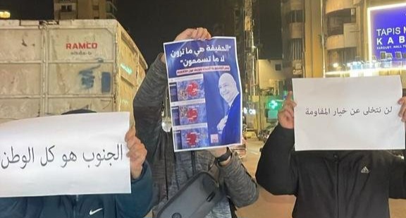وقد رفع المحتجون لافتات تضامناً مع أهالي الجنوب.