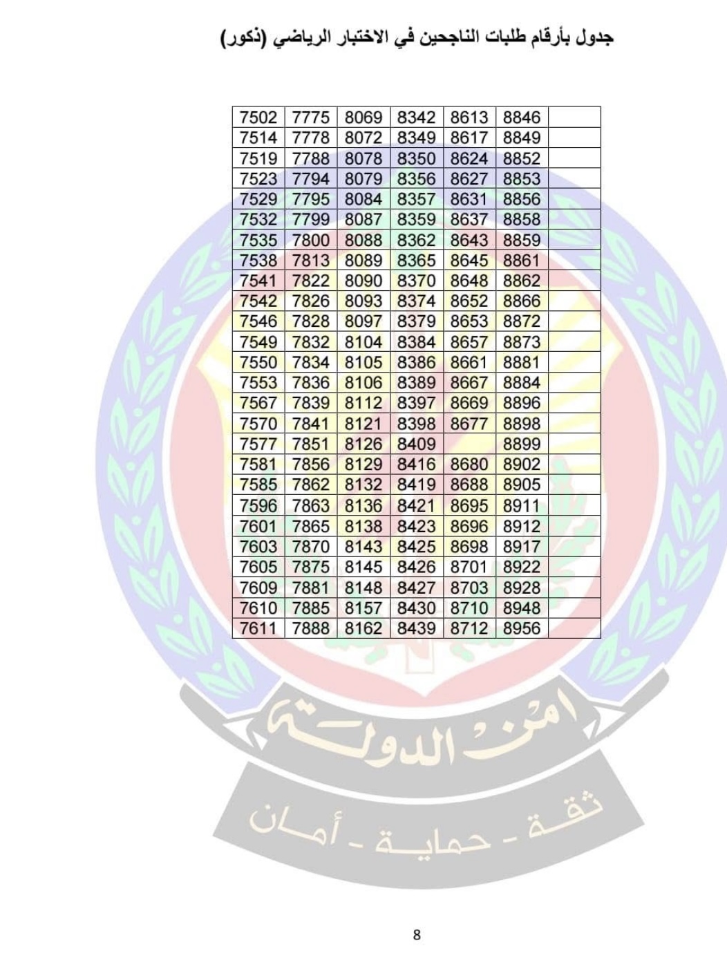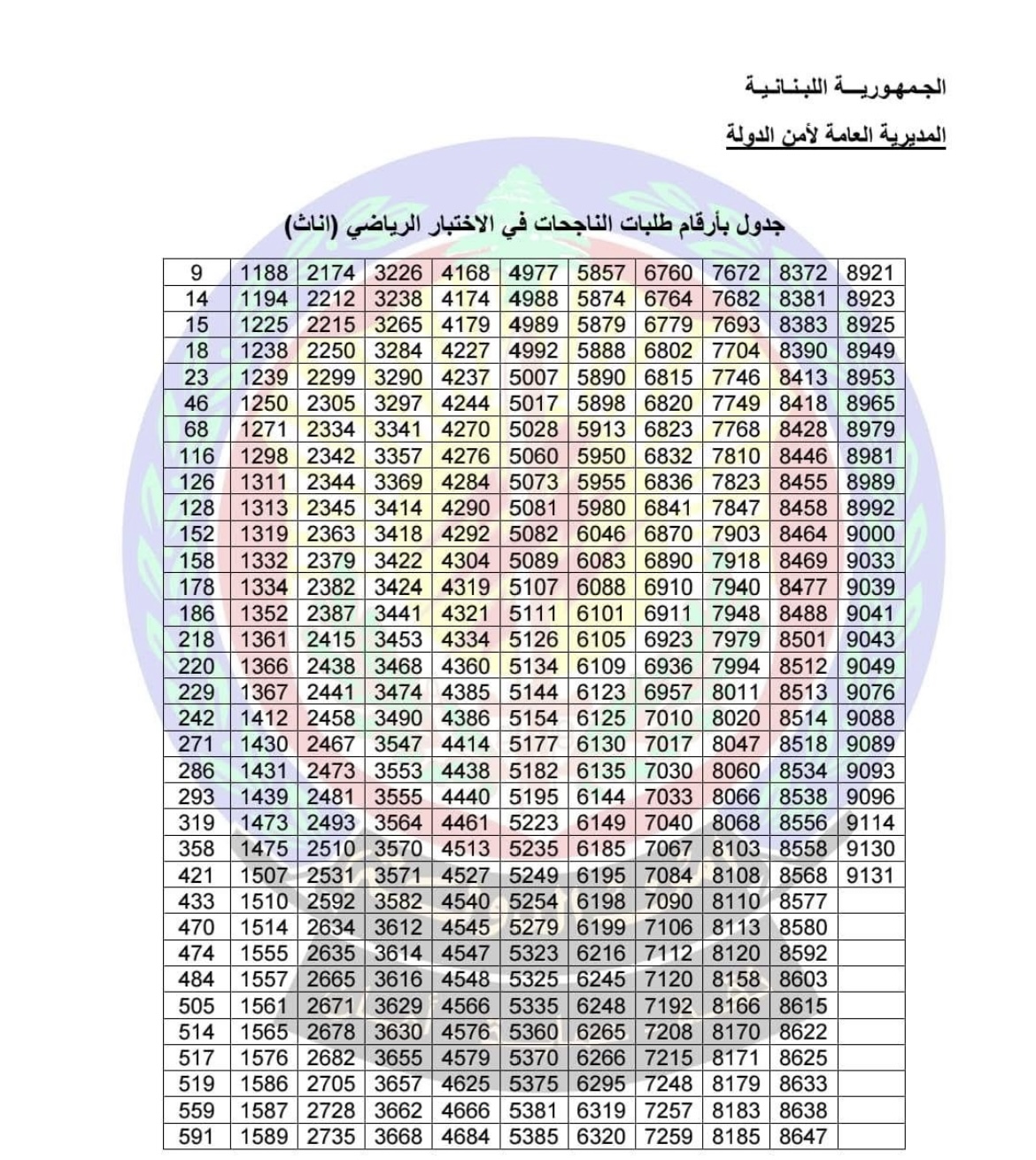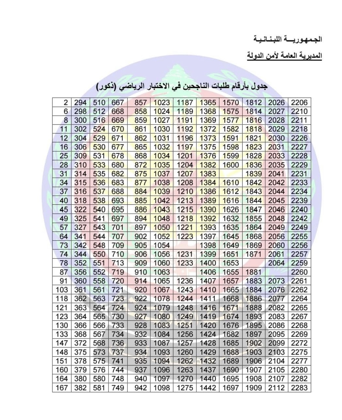 دعت المديرية العامة لأمن الدولة، عبر قسم الإعلام والتوجيه والعلاقات العامة، المرشحين والمرشحات الذين نجحوا في الاختبار الرياضي لرتبة مأمور متمرن، الاطلاع على جدول الناجحين المرفق، والاستعداد لخوض الاختبارات الخطية.