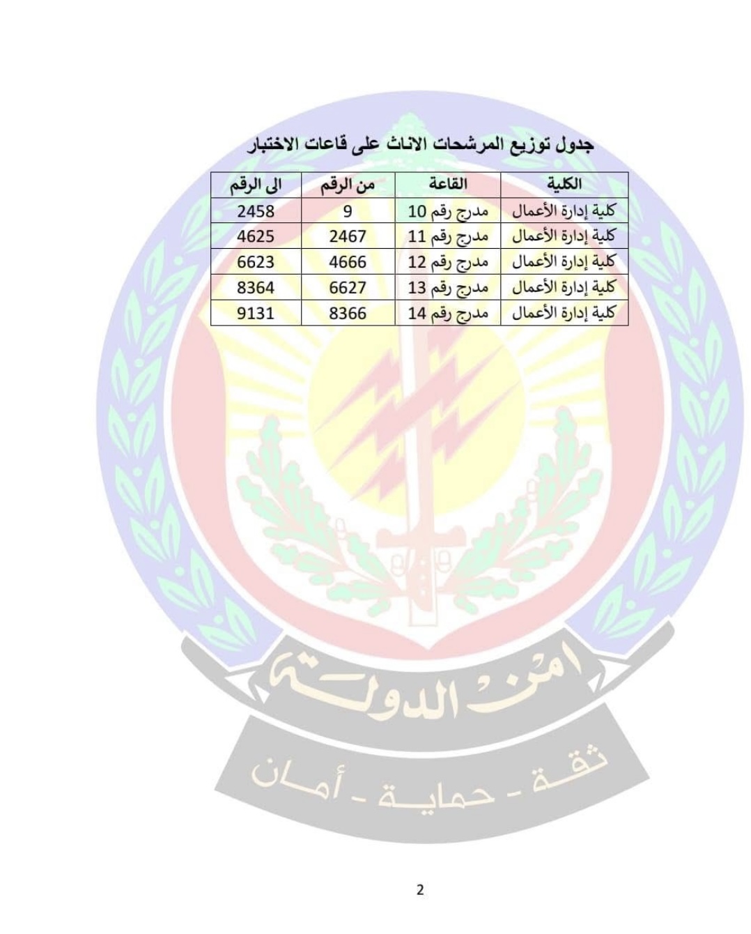 كما طلبت المديرية من المرشحين الاطلاع على جداول توزيعهم على الكليات والقاعات قبل موعد الاختبار، وإحضار إيصال الترشيح المزود بالرسم الشمسي مرفقاً بصورة عن بيان القيد الإفرادي، إلى جانب قلم حبر أزرق فقط.