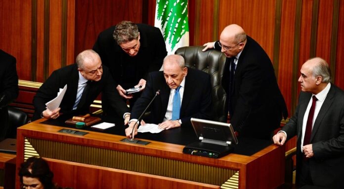 الرئيسيةسياسةبدء جلسة استكمال مناقشة الموازنةسياسةشريط الاحداثبدء جلسة استكمال مناقشة الموازنة تصوير عباس سلمانبدأت جلسة مجلس النواب، لاستكمال مناقشة الموازنة العامة للعام 2026.يذكر أن هذه الجلسة هي الثالثة لليوم الثالث على التوالي، في ما يخص الموازنة. Tagsجلسةمجلس النوابمناقشة الموازنةشريط الأحداثغسان عطالله: وزارة المهجرين “شو بعدا عم تعمل؟” 29/01/2026 بنود جلسة مجلس الوزراء 29/01/2026 جورج عطالله: مشروع الموازنة الحالي لا يعتمد أي رؤية اقتصادية 29/01/2026 ترامب يدرس خياراته ضد إيران 29/01/2026 مقالات ذات صلة سياسةغسان عطالله: وزارة المهجرين “شو بعدا عم تعمل؟” 29/01/2026 سياسةبنود جلسة مجلس الوزراء 29/01/2026 سياسةجورج عطالله: مشروع الموازنة الحالي لا يعتمد أي رؤية اقتصادية 29/01/2026