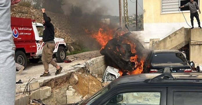 الرئيسيةأمن و قضاءشهيد باستهداف سيارة في صديقينأمن و قضاءشريط الاحداثشهيد باستهداف سيارة في صديقين شن الاحتلال الاسرائيلي غارة من مسيرة بصاروخين على بلدة صديقين، مستهدفاً سيارة.وقد تحدثت المعلومات الأولية، عن ارتقاء شهيد جراء الغارة. Tagsاسرائيلجنوب لبنانسيارةصيديقينغارةشريط الأحداثصدور مرسوم دعوة الهيئات الناخبة في الجريدة الرسمية 30/01/2026 عقوبات أوروبية جديدة على أفراد من “الدعم السريع” والجيش السوداني 30/01/2026 بالصور – “الديفا” تتألق في أسبوع الموضة الباريسي! 30/01/2026 عراقجي وفيدان يدعوان للحوار ورفض التدخل العسكري 30/01/2026 مقالات ذات صلة سياسةصدور مرسوم دعوة الهيئات الناخبة في الجريدة الرسمية 30/01/2026 شريط الاحداثعقوبات أوروبية جديدة على أفراد من “الدعم السريع” والجيش السوداني 30/01/2026 شريط الاحداثبالصور – “الديفا” تتألق في أسبوع الموضة الباريسي! 30/01/2026