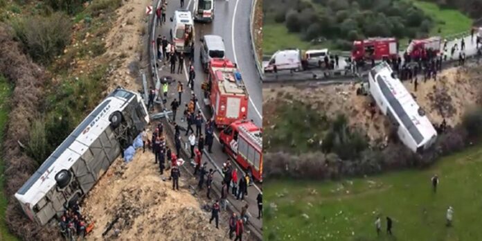 وأظهرت لقطات فرق الإسعاف التركية وهي تقدم الإسعافات الأولية وتنقل مصابين والحافلة منقلبة على جانب الطريق والأضرار التي لحقت بها بعد أن دمرت الحاجز الجانبي. وكانت الحافلة تسير في قضاء “دوشمالتي” متجهة من مدينة “تكرداغ” إلى مدينة أنطاليا.