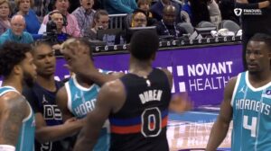 وأخذت المباراة بين بيستونز متصدر ترتيب المنطقة الشرقية وهورنتس المتألق مع تسعة انتصارات متتالية قبل انطلاق اللقاء، منعطفاً كبيراً عندما وقعت مشاجرة عنيفة خلال الربع الثالث بعد ان ارتكب لاعب هورنتس، الفرنسي موسى دياباتي خطأ على منافسه جايلن دورين.