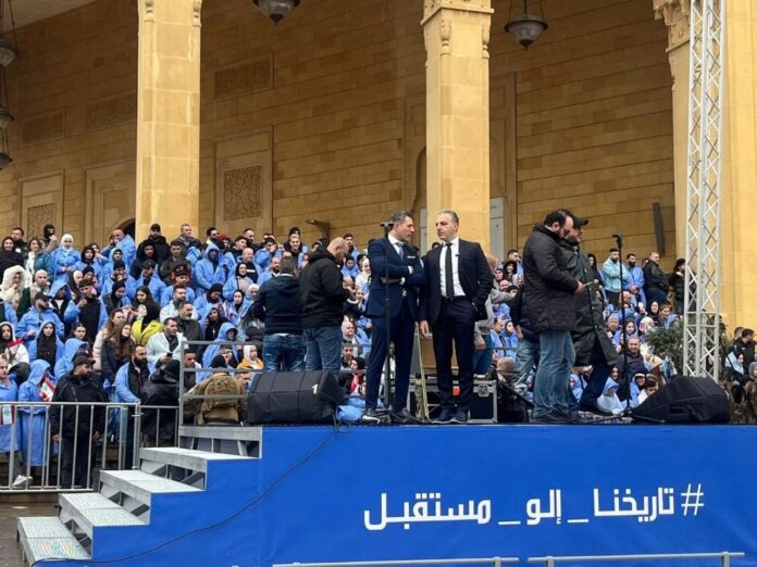 وشهدت باحة مسجد محمد الأمين المتاخمة للضريح تجمعًا لمناصري تيار “المستقبل” الذين ارتدوا المعاطف الزرقاء.