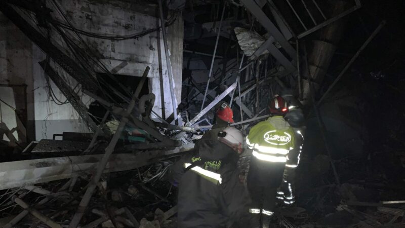 وأفادت أنه تم إنقاذ عاملين من تحت الأنقاض، جرى إسعافهما ونقلهما إلى أحد المستشفيات لتلقّي العلاج اللازم. كما أنه تم انتشال جثة عامل من التابعية الهندية من تحت الركام.
