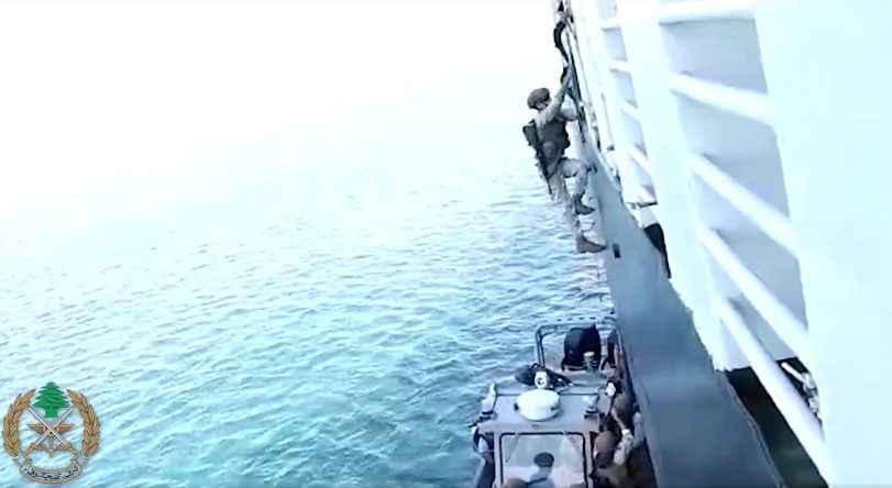 نفّذت سرية من فوج مغاوير البحر في الجيش اللبناني، تمريناً يُحاكي دهم سفينة وتفتيشها في مرفأ بيروت، شاركت فيه طوافات تابعة للقوات الجوية وأشرف عليه فريق تدريب أميركي.
