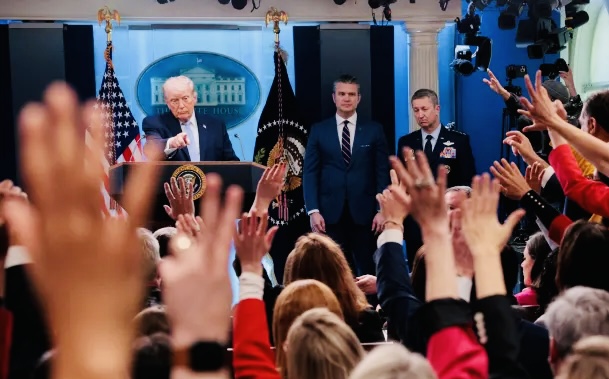 في مشهد يعكس توتر العلاقة بين الرئيس الأميركي دونالد ترامب ووسائل الإعلام، رفض ترمب الإجابة على سؤال طرحته مراسلة شبكة “سي بي إس نيوز” أوليفيا رينالدي، حول تقارير تفيد بإطلاق زوارق إيرانية النار على سفن في مضيق هرمز، قبل أن ينهي التفاعل معها داخل البيت الأبيض، في خطوة اعتبرها متابعون بمثابة “طرد فعلي” من المؤتمر الصحافي.