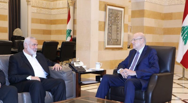 استقبل رئيس حكومة تصريف الاعمال نجيب ميقاتي، في السراي الحكومي، رئيس المكتب السياسي لحركة “حماس” إسماعيل هنية.