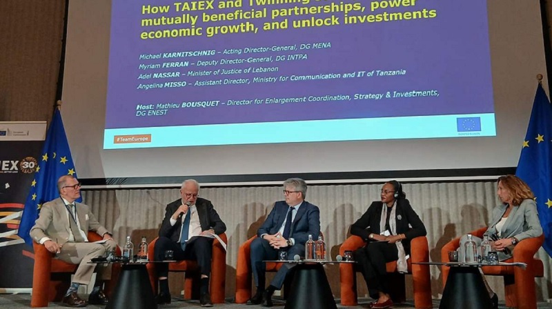 وتوقّف خصوصاً عند تجربة “منتدى العدالة” (Justice Forum) الذي أُطلق بمبادرة من الاتحاد الأوروبي وبدعم فاعل من برنامج TAIEX، واصفاً إياه بأنه إطار تشاركي غير مسبوق جمع مختلف الأطراف المعنية في العملية التشريعية، ولا سيما خلال إعداد مشروع قانون التنظيم القضائي (قانون استقلالية القضاء).