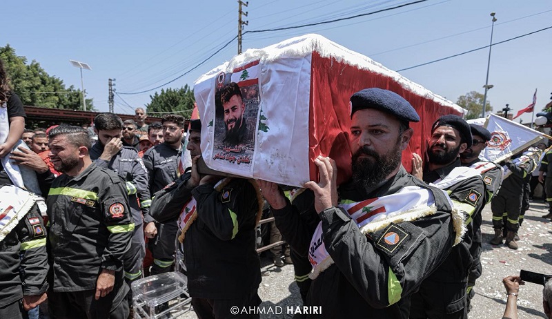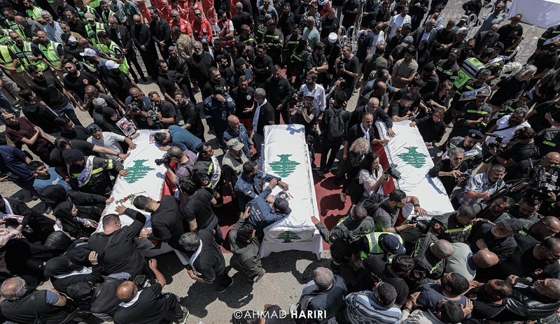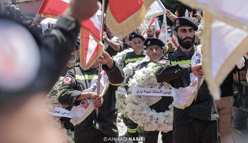 أقيمت يوم الخميس مراسم تشييع شهداء الدفاع المدني اللبناني، الذين استشهدوا في بلدة مجدل زون قبل يومين أثناء عملهم الإنساني والوطني.