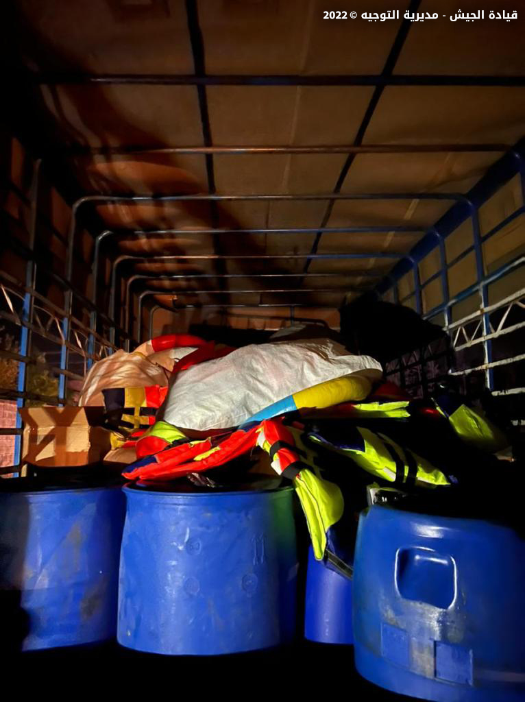 كما أوقفت المواطنين (ح.ح.) و(خ.ج.) و(خ.ش.). كاشفة أنه ضبط في حوزتهم سلاح حربي، و4000 ليتر من المازوت، و100 سترة نجاة، و16 دولاب فلين، و46 دولاباً هوائياً، ومنفخان كهربائيان.
