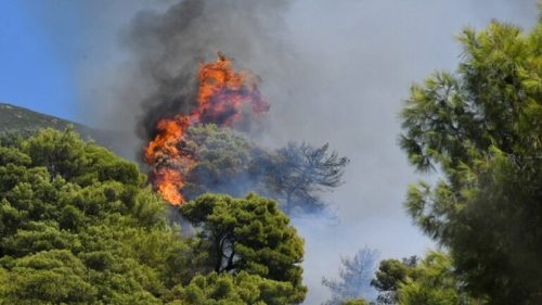 اندلعت حرائق مدمرة في إحدى الغابات بمنطقة داو بنديلي الجبلية شمال إقليم أتيكا باليونان.