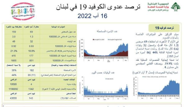 الرئيسيةشريط الاحداث1342 إصابة جديدة بـ"كورونا"شريط الاحداثمحليات1342 إصابة جديدة بـ”كورونا” أعلنت وزارة الصحة العامة في تقريرها اليومي تسجيل “1342 إصابة جديدة بفيروس كورونا، رفعت العدد التراكمي للحالات المثبتة الى 1198892، كما تم تسجيل 4 وفيات”.Tagsكوروناوزارة الصحة العامةشريط الأحداثغارة على زبقين 19/01/2026 الإمارات تعلن الانسحاب الكامل من اليمن 19/01/2026 لبنان بين النار والسياسة العاجزة.. ودافوس وغرينلاند تكشف صراع القوى الكبرى! 19/01/2026 عراقجي: “دافوس” ألغى مشاركته بسبب ضغوط “إسرائيل” 19/01/2026 مقالات ذات صلة أمن و قضاءغارة على زبقين 19/01/2026 شريط الاحداثالإمارات تعلن الانسحاب الكامل من اليمن 19/01/2026 سياسةلبنان بين النار والسياسة العاجزة.. ودافوس وغرينلاند تكشف صراع القوى الكبرى! 19/01/2026